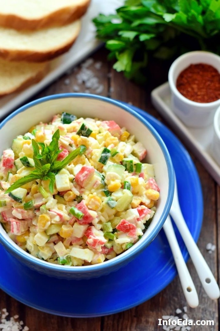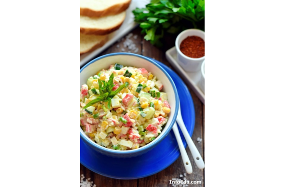 Крабовые палочки, кукуруза, яйцо, соль, перец, майонез.